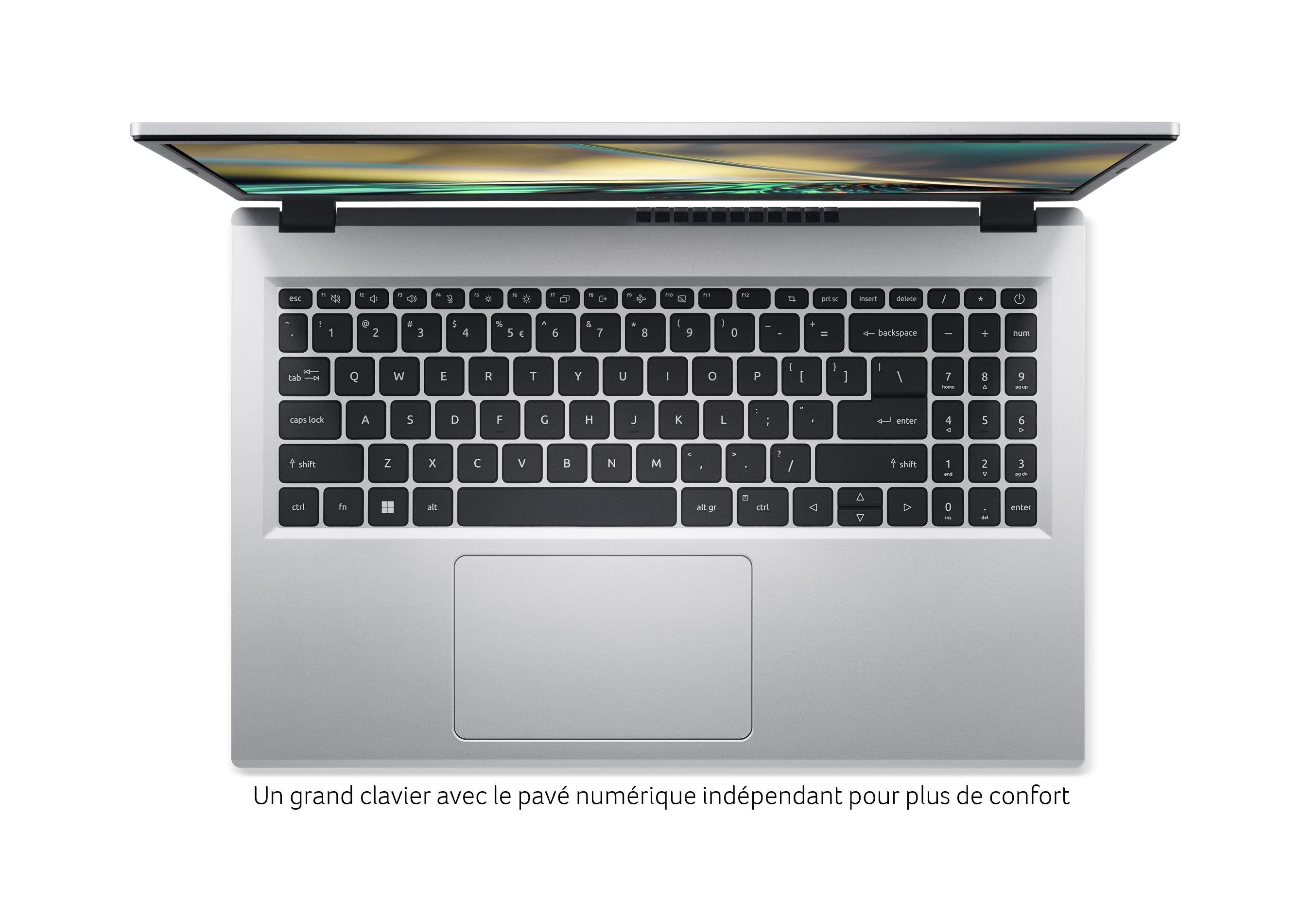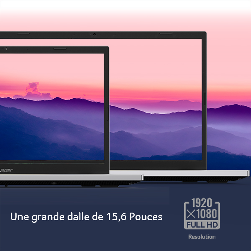 Choisissez l'Aspire 3 prêt à l'emploi avec les derniers processeurs AMD Ryzen™ série 7000 conçus pour le multitâche et la productivité. Grâce à sa simplicité d'utilisation, cet ordinateur portable familial est toujours prêt à vous suivre. Performances prêtes à l'emploi L'Aspire 3 est prêt à l'emploi avec les derniers processeurs AMD Ryzen™ série 7000 et les graphiques Radeon™. Idéal pour toute la famille, il est axé sur les performances et la productivité. Parfait pour optimiser le travail, les études ou les divertissements. Qualités thermiques améliorés Avec une augmentation de 78 % de la surface du ventilateur, profitez d'un système thermique amélioré et d'une capacité thermique supplémentaire de 17 %. Pour des sessions de travail plus longues et plus efficaces sans connexion. Un design bien pensé Avec son capot sophistiqué en métal disponible dans de nouvelles couleurs vives, l'Aspire 3 est plus léger (1,6 kg1) et plus fin (18,9 mm1) que jamais. Une batterie longue durée permet à la famille d'en faire plus entre deux charges. L'écran L'écran FHD 1080p est idéal pour la navigation sur le Web et le streaming de vidéos, pour des images nettes et détaillées. Et avec Acer BlueLightShield™, réduisez les niveaux d'exposition à la lumière bleue pour vous et vos proches. Connectivité Connectez ou chargez vos appareils les plus récents sur le port USB de type C complet. En outre, les technologies Wi-Fi 6E1,2 et HDMI 2.1 améliorent la productivité et les fonctionnalités de toute la famille.