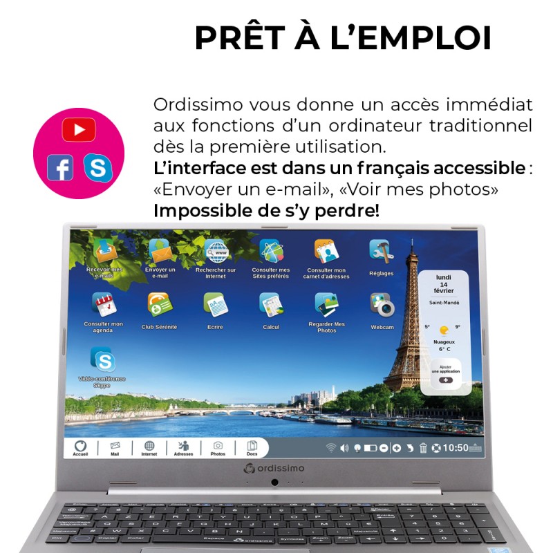 Facile et intuitive, l'interface Ordissimo vous permettra d'en faire toujours plus avec le moins d'efforts ! Très polyvalent, votre Ordissimo est équipé de nombreux programmes dont un traitement de textes, un tableur, retouche photos etc. Pour se détendre, apprendre ou travailler, quel que soit votre besoin, vous n'aurez que l'embarras du choix.