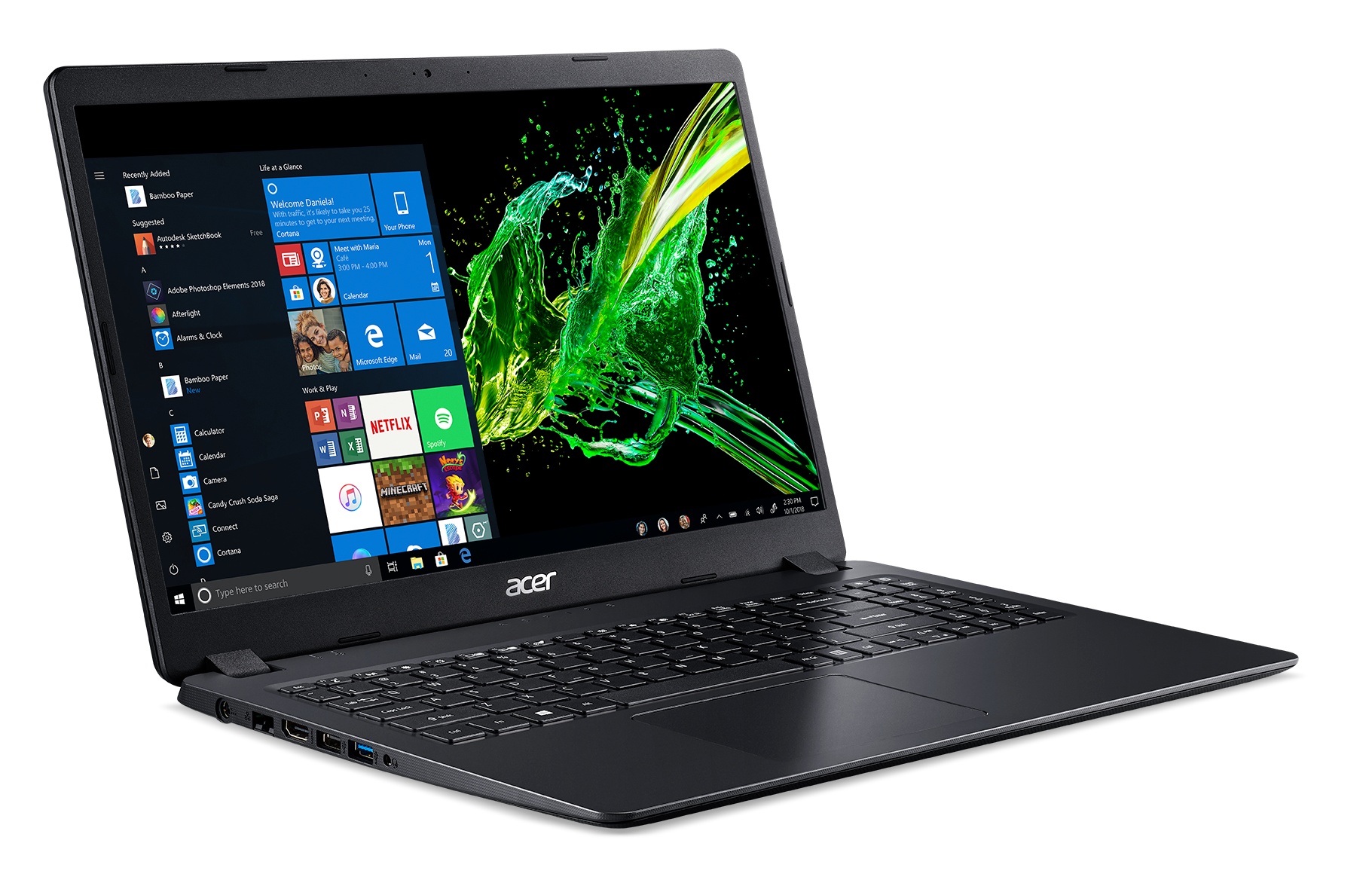Acer Aspire 3 Choisissez l'Aspire 3 prêt à l'emploi avec son processeur Intel® Core™ conçus pour le multitâche et la productivité. Grâce à sa simplicité d'utilisation, cet ordinateur portable familial est toujours prêt à vous suivre. Acer Precision Touchpad Un Touchpad plus précis et plus large afin d’améliorer votre expérience au quotidien : scroller une page internet, agrandir, utiliser un outil bureautique… Inclinable à 180° S’adapte à toutes les situations pour une prise en main des plus agréable.
