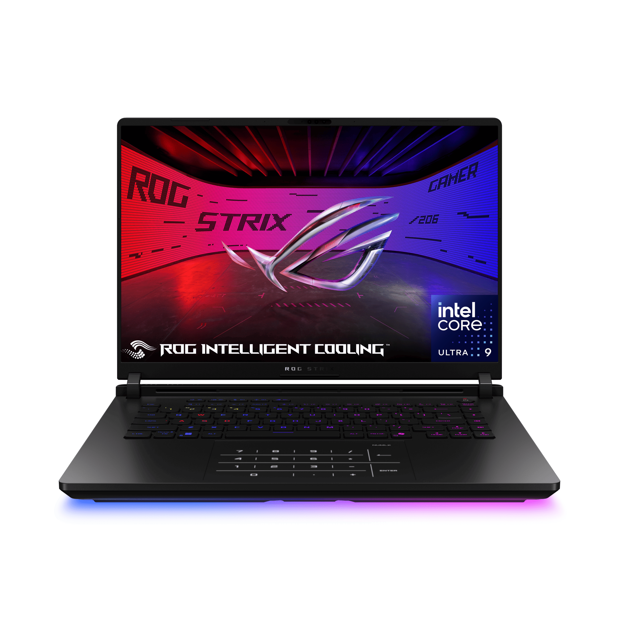 Refroidissement et Conception Système thermique : "ROG Intelligent Cooling" avec chambre à vapeur, métal liquide (CPU/GPU) et trois ventilateurs.