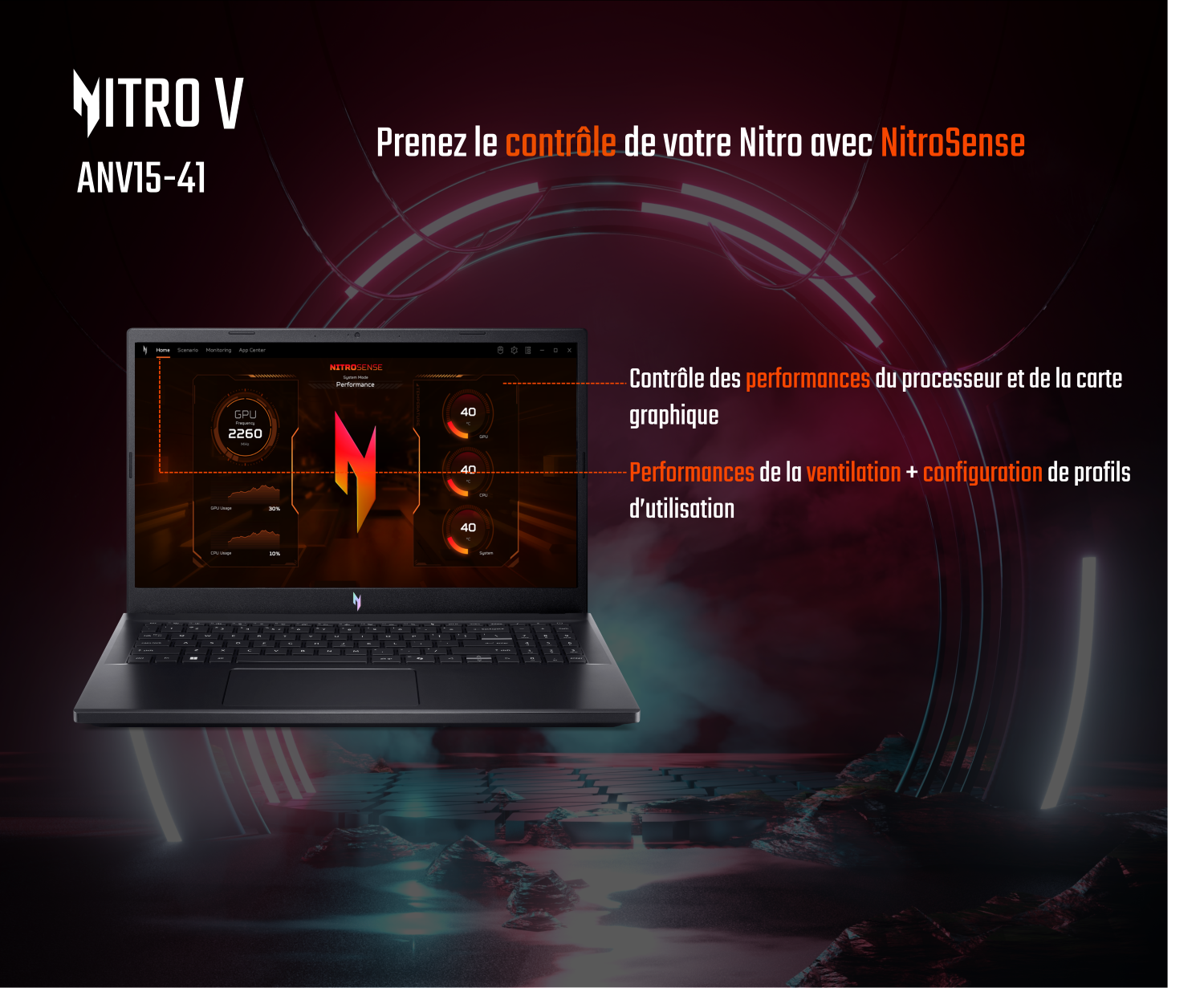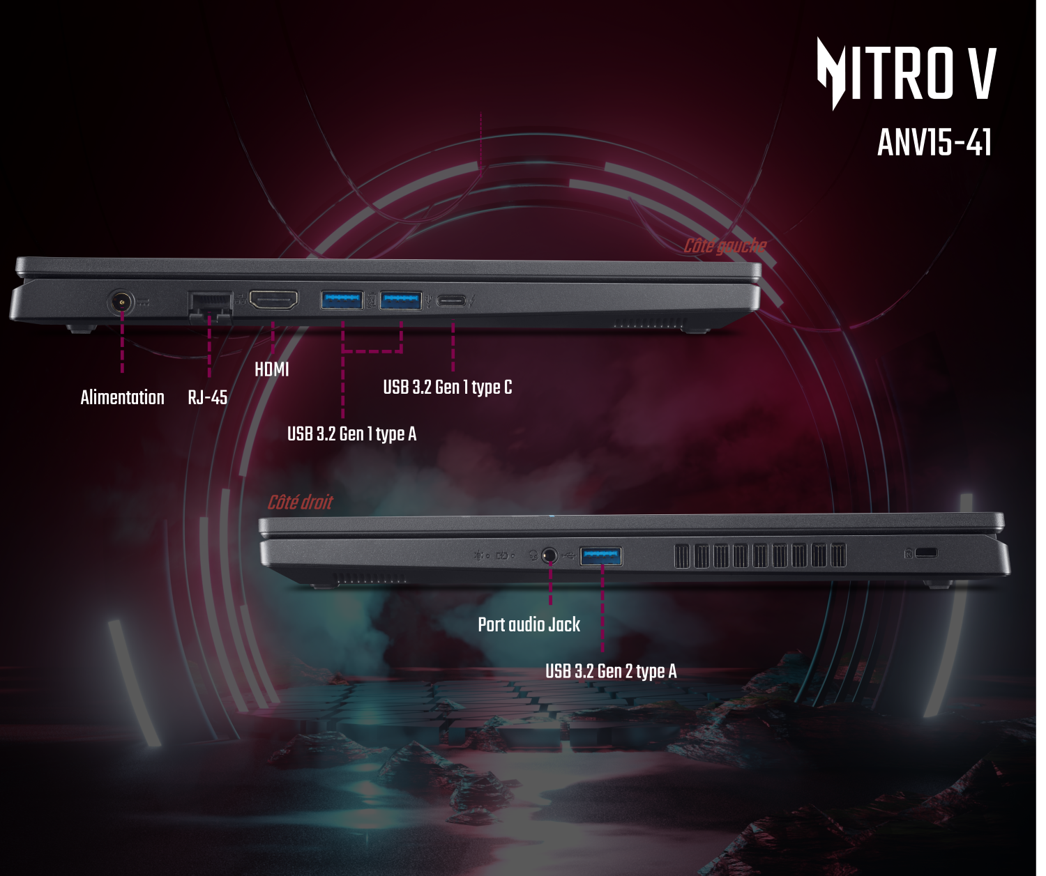| Libellé | PC Portable Gaming Acer ANV15-41-R8JL (15,6" FHD 144Hz) | AMD Ryzen 7-7735HS | 16Go RAM | 512Go SSD - RTX 4060 |