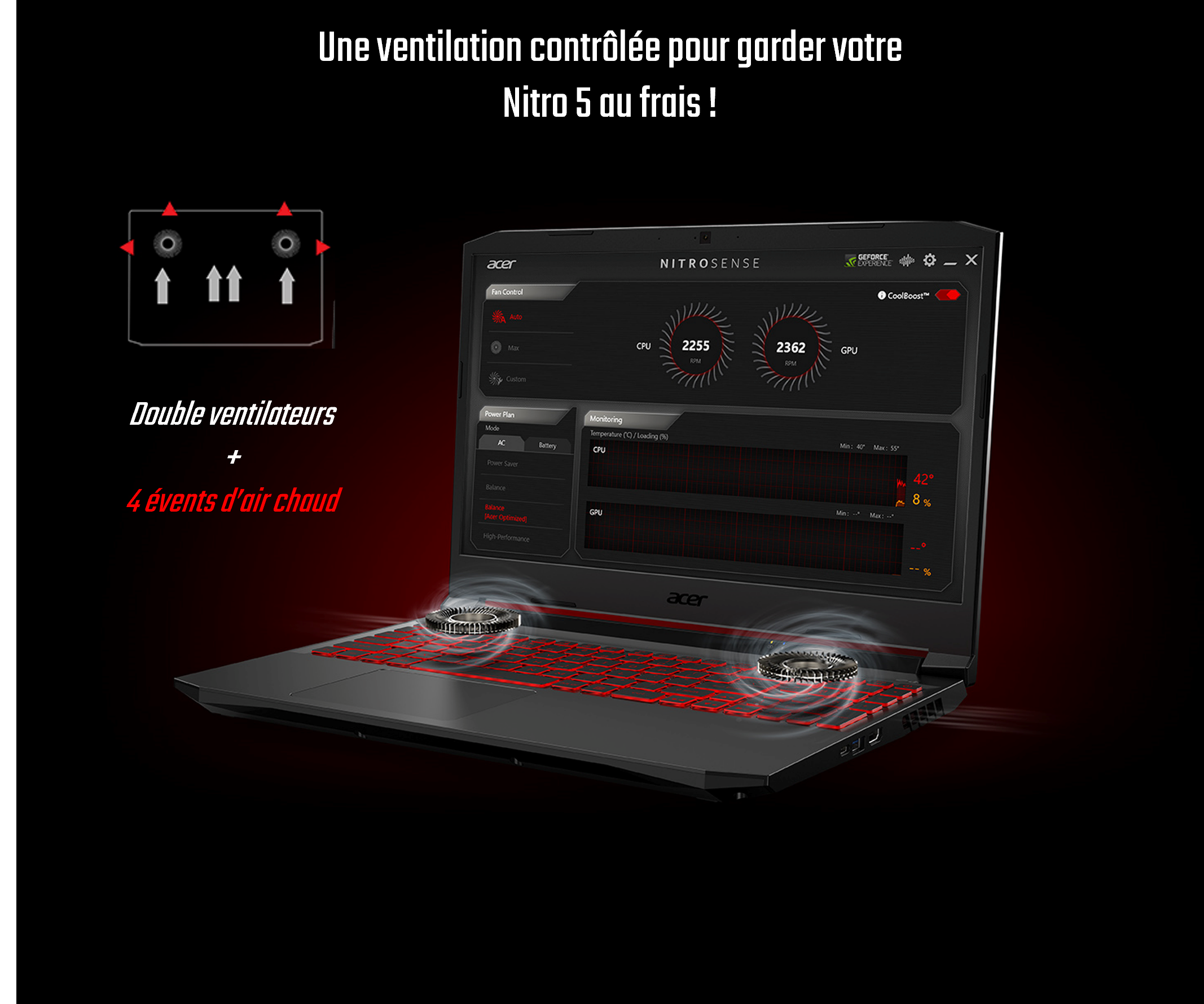 Démarrez sur les chapeaux de roue avec l'ordinateur portable gaming Acer Nitro 5 17,3", que ce soit pour le plaisir ou la compétition. Rejoignez l'élite avec un processeur Intel® Core™ i7. Configurez votre ordinateur portable pour bénéficier d'une vitesse maximale et d'une capacité de stockage impressionnante grâce à deux emplacements pour les disques PCIe et 16 Go de RAM DDR4.