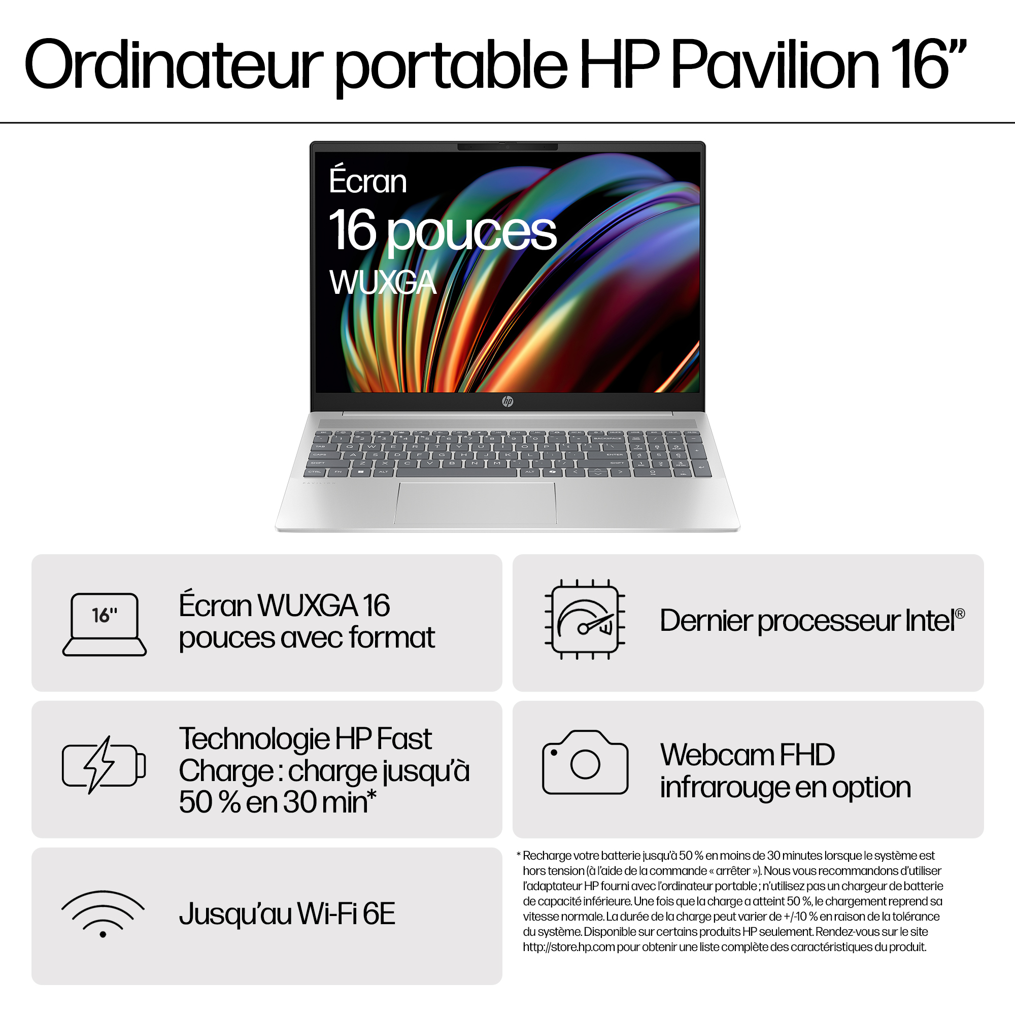 | Libellé | PC Portable HP Pavilion 16-af0038nf | 16" 2K OLED | Intel Core i5-1334U | 16 Go RAM | 512 Go SSD | Windows 11 Home |