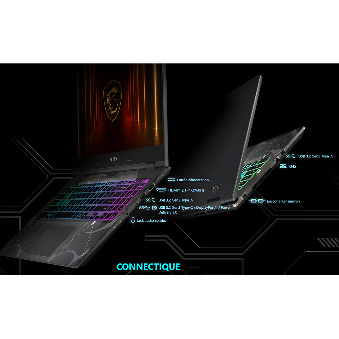 PC Portable Gamer MSI Cyborg 15 B13WGKG-1013FRNN - Intel Core i7-13620H - 16GB DDR5 5200 Mhz (16GB*1), Maximum 96GB - SSD 512GB NVMe PCIe Gen 4 - Nvidia RTX 5070 8GB GDDR7 - 15.6" IPS Full HD (1920*1080), 144Hz - Wifi 6E, Bluetooth 5.3 - Windows 11 Famille
