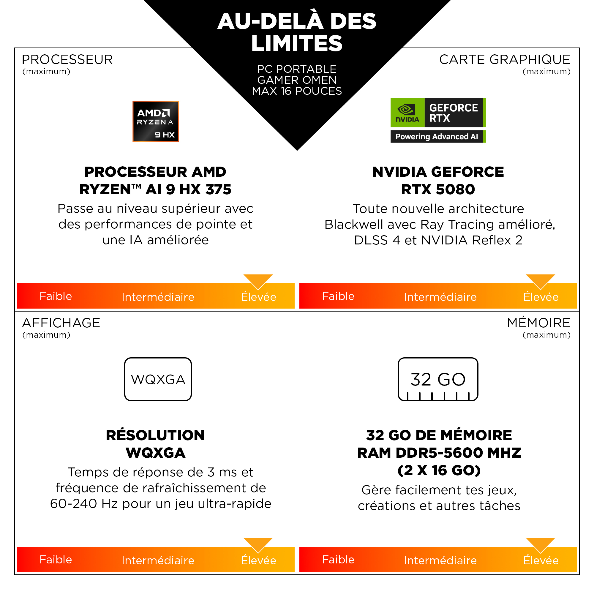 Libellé PC Portable OMEN HP 16-ak0018nf / 16" WQXGA / AMD Ryzen AI 9 HX 375 / 32 Go RAM / 1 To SSD / RTX 5080
