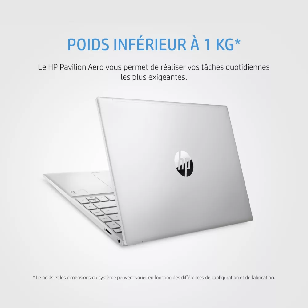 Ordinateur portable HP Pavilion Aero 13be2009nf Ordinateur portable ultraléger avec un affichage incroyable Plus rien ne vous retient avec l’ordinateur portable HP Pavilion Aero. Incroyablement léger, il vous permet de réaliser vos tâches les plus exigeantes. Cet ordinateur portable est doté d’un écran 16:10 à micro-bords qui vous offre un plus grand espace d’affichage pour une meilleure expérience de divertissement et vous permet d’améliorer votre productivité. Passez à la vitesse supérieure grâce aux performances élevées d’un processeur AMD .