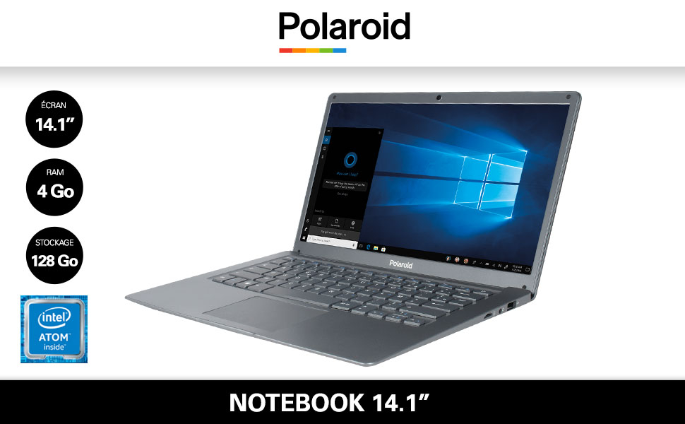 Découvrez avec notre Notebook Silver POLAROID au design classique et épuré, le confort de pouvoir emporter partout votre ordinateur. Grâce à sa silhouette ultrafine et son poids plume (1.3 Kg) vous pourrez le transporter facilement dans votre sac.