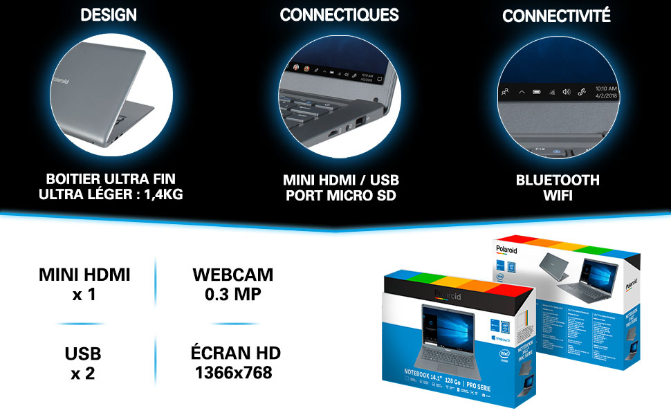 | Libellé | PC Portable POLAROID 14" 4 128 |