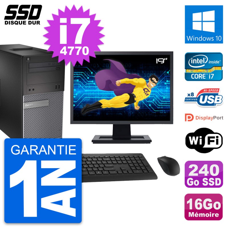 PC Tour Dell 3020 Ecran 19" Intel i7-4770 RAM 16Go SSD 240Go Windows 10 Wifi