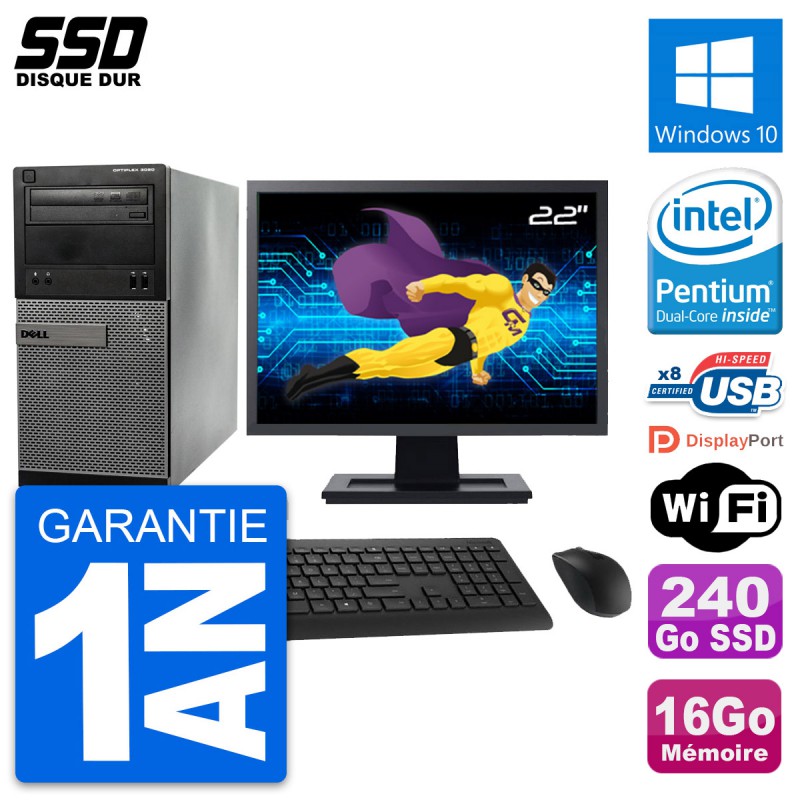 | Libellé | PC Tour Dell 3020 Ecran 22" Intel G3220 RAM 16Go SSD 240Go Windows 10 Wifi |