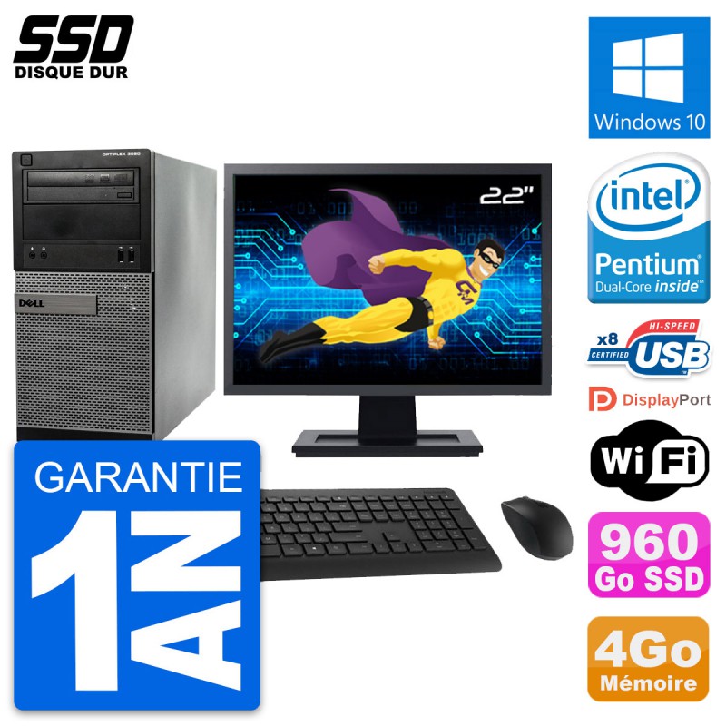| Libellé | PC Tour Dell 3020 Ecran 22" Intel G3220 RAM 4Go SSD 960Go Windows 10 Wifi |