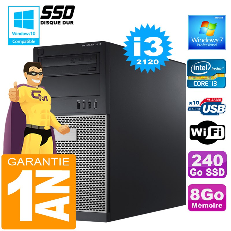 | Libellé | PC Tour DELL 7010 Core I3-2120 Ram 8Go Disque 240 Go SSD Wifi W7 |