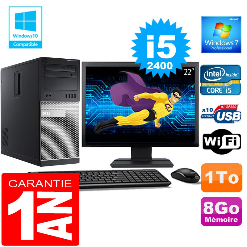 | Libellé | PC Tour DELL 7010 Core I5-2400 Ram 8Go Disque 1 To Wifi W7 Ecran 22" |