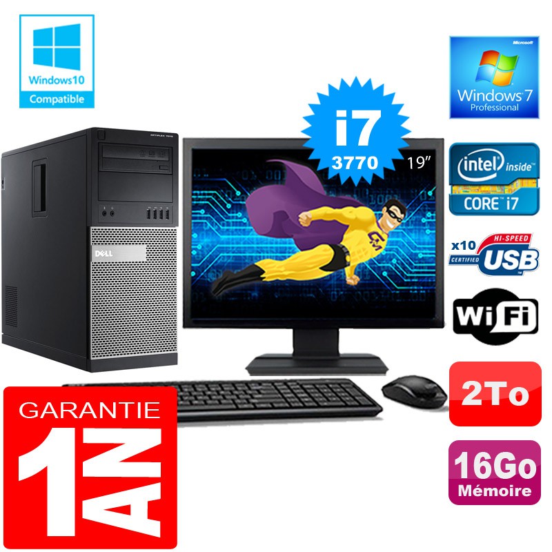 PC Tour DELL 7010 Core I7-3770 Ram 16Go Disque 2 To Wifi W7 Ecran 19"