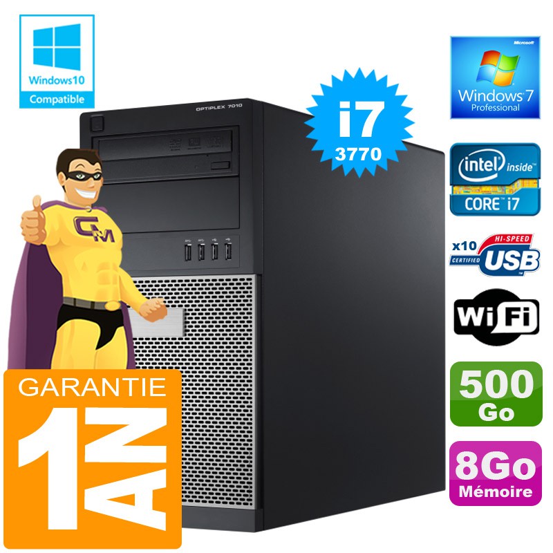 PC Tour DELL 7010 Core I7-3770 Ram 8Go Disque 500 Go Graveur DVD Wifi W7