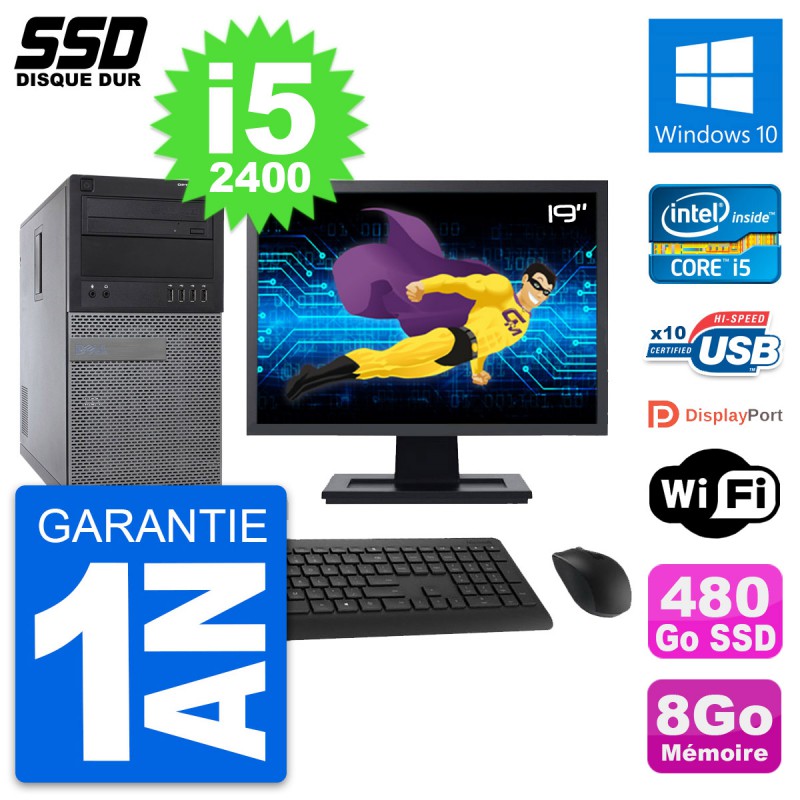 PC Tour Dell 790 MT Ecran 19" Intel i5-2400 RAM 8Go SSD 480Go Windows 10 Wifi