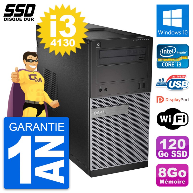 | Libellé | PC Tour Dell OptiPlex 3020 Intel Core i3-4130 RAM 8Go SSD 120Go Windows 10 Wifi |