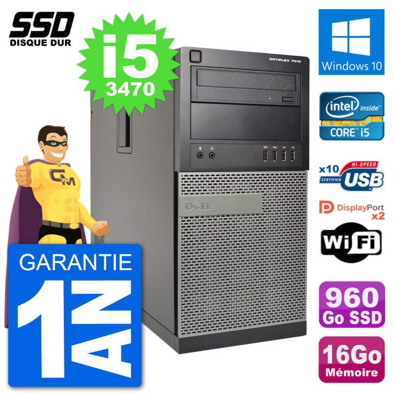 PC Tour Dell OptiPlex 7010 Intel Core i5-3470 RAM 16Go SSD 960Go Windows 10 Wifi