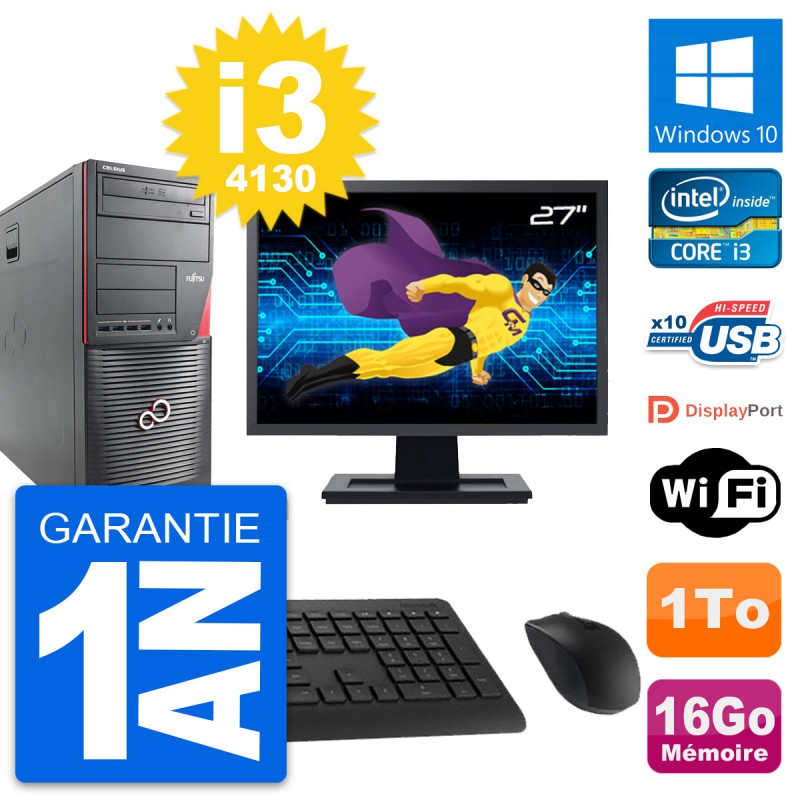| Libellé | PC Tour Fujitsu W530 Ecran 27" Intel i3-4130 RAM 16Go Disque 1To Windows 10 Wifi |