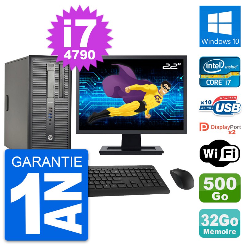 | Libellé | PC Tour HP 600 G1 Ecran 22" Intel i7-4790 RAM 32Go Disque 500Go Windows 10 Wifi |