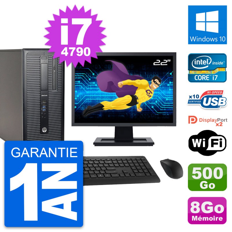 PC Tour HP 800 G1 Ecran 22" Intel i7-4790 RAM 8Go Disque 500Go Windows 10 Wifi