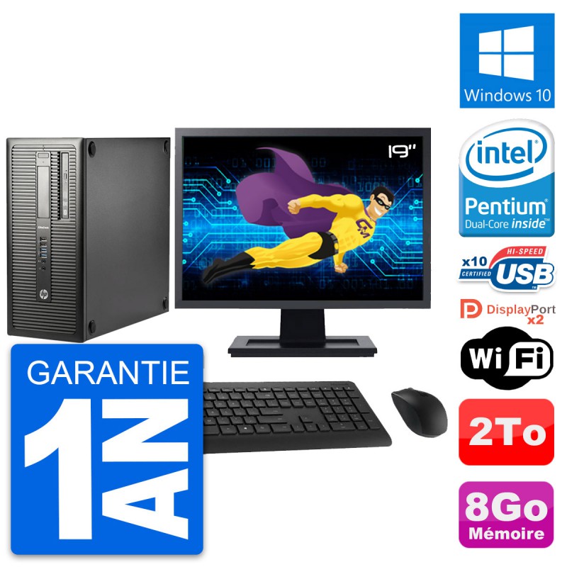 PC Tour HP EliteDesk 800 G1 Ecran 19" G3220 RAM 8Go Disque 2To Windows 10 Wifi
