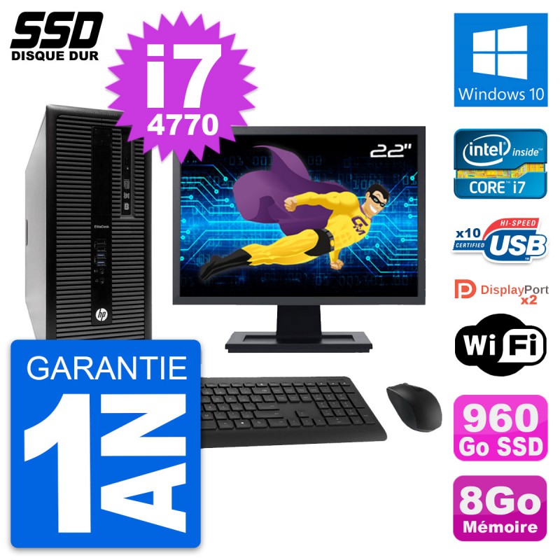 PC Tour HP EliteDesk 800 G1 Ecran 22" i7-4770 RAM 8Go SSD 960Go Windows 10 Wifi