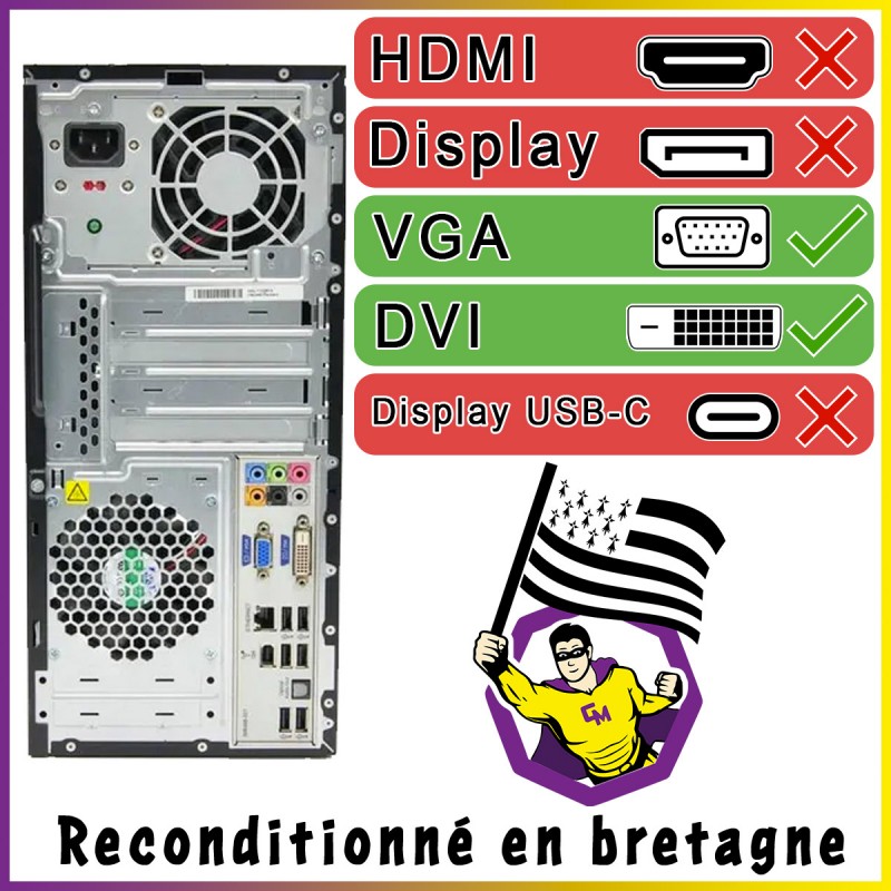 | Libellé | PC Tour HP Pro 3130 MT Intel Core i3-550 RAM 16Go SSD 480Go W10 Wifi |