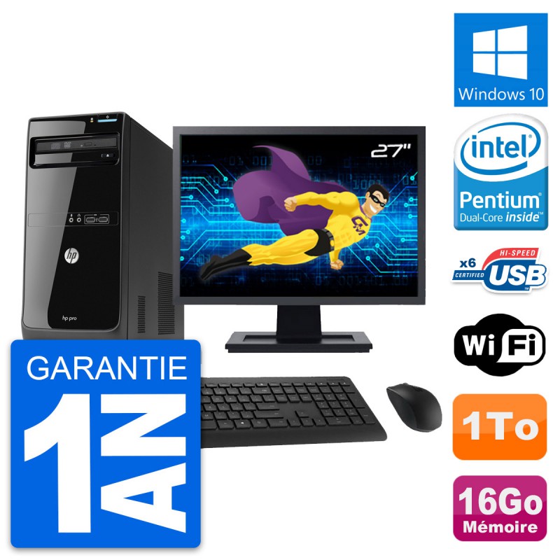 PC Tour HP Pro 3400 MT Ecran 27" Intel G630 RAM 16Go Disque 1To Windows 10 Wifi