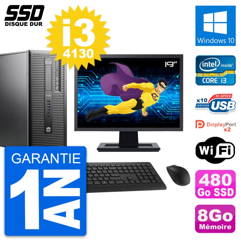 PC Tour HP ProDesk 600 G1 Ecran 19" i3-4130 RAM 8Go SSD 480Go Windows 10 Wifi