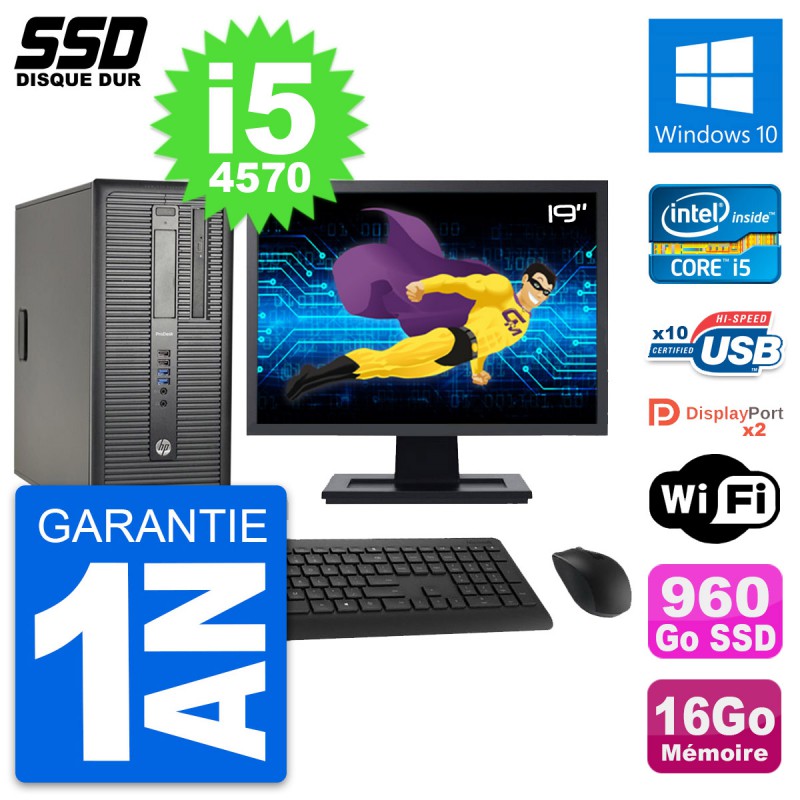 PC Tour HP ProDesk 600 G1 Ecran 19" i5-4570 RAM 16Go SSD 960Go Windows 10 Wifi