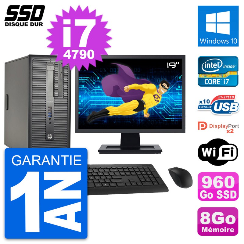 PC Tour HP ProDesk 600 G1 Ecran 19" i7-4790 RAM 8Go SSD 960Go Windows 10 Wifi