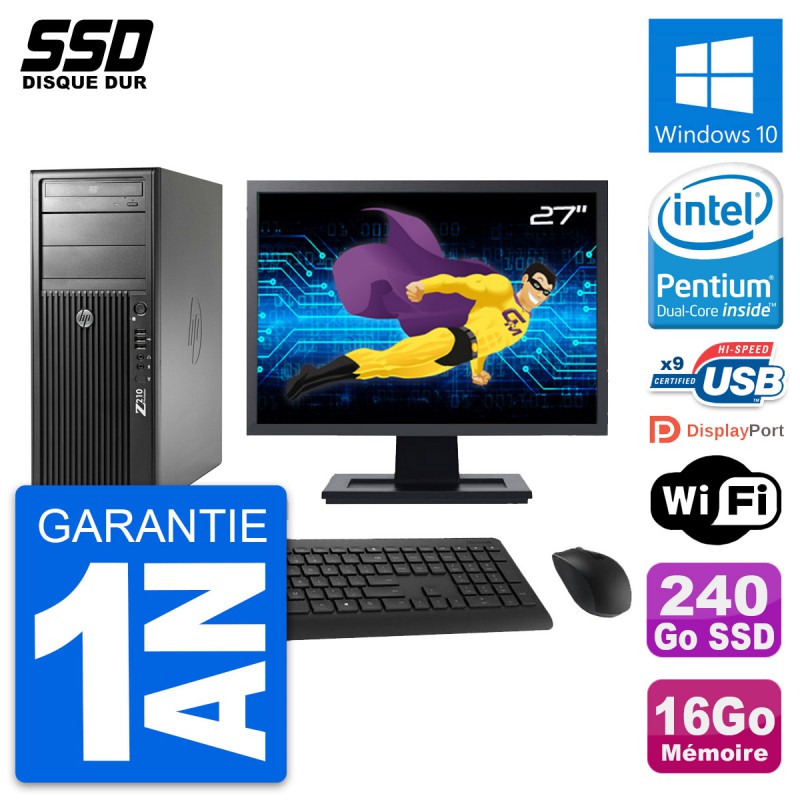 | Libellé | PC Tour HP Z210 Ecran 27" Intel Pentium G630 RAM 16Go SSD 240Go Windows 10 Wifi |