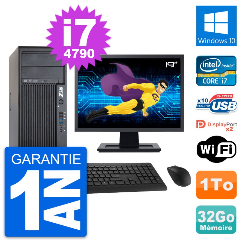 PC Tour HP Z230 Ecran 19" Intel Core i7-4790 RAM 32Go Disque 1To Windows 10 Wifi