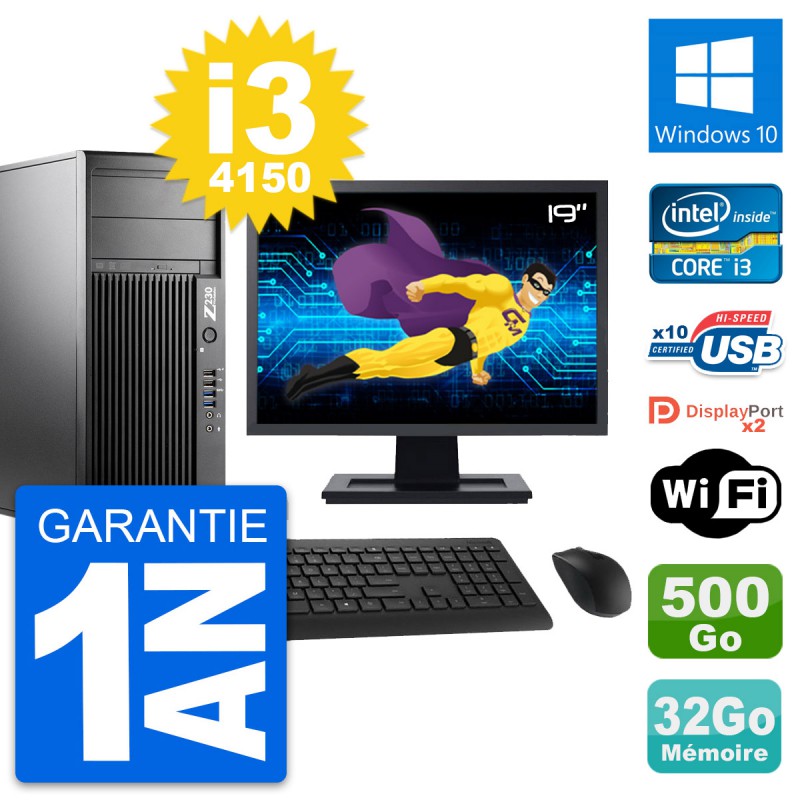 PC Tour HP Z230 Ecran 19" Intel i3-4150 RAM 32Go Disque 500Go Windows 10 Wifi