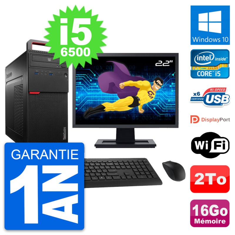 PC Tour Lenovo M700 Ecran 22" Intel i5-6500 RAM 16Go Disque 2To Windows 10 Wifi