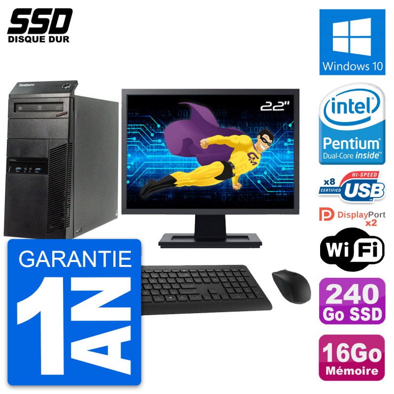 PC Tour Lenovo M83 Ecran 22" Intel G3220 RAM 16Go SSD 240Go Windows 10 Wifi