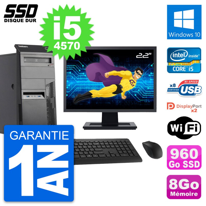 PC Tour Lenovo M83 Ecran 22" Intel i5-4570 RAM 8Go SSD 960Go Windows 10 Wifi