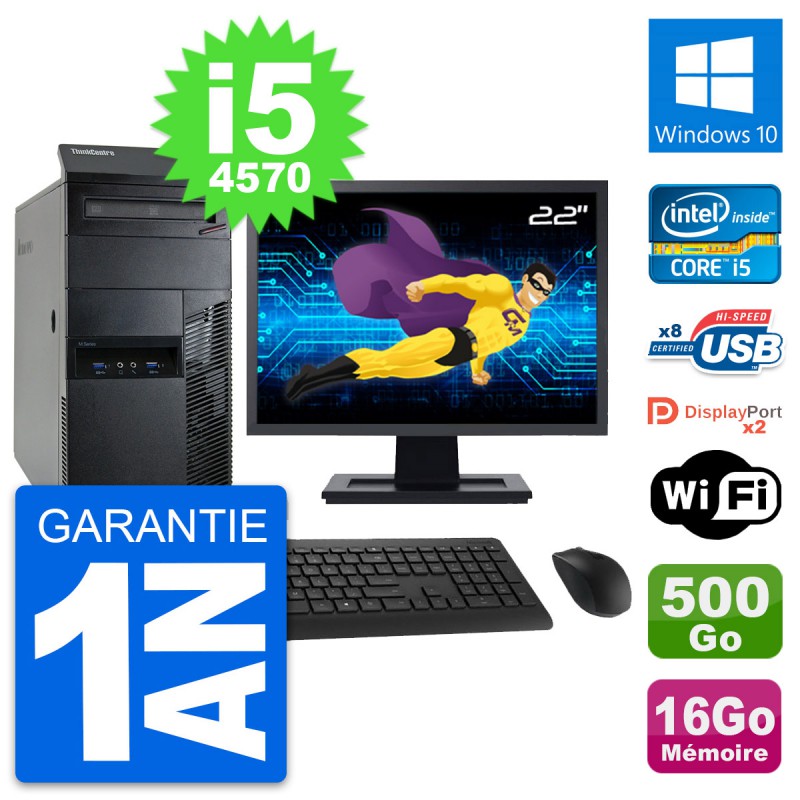 PC Tour Lenovo M93p Ecran 22" Core i5-4570 RAM 16Go Disque 500Go Windows 10 Wifi