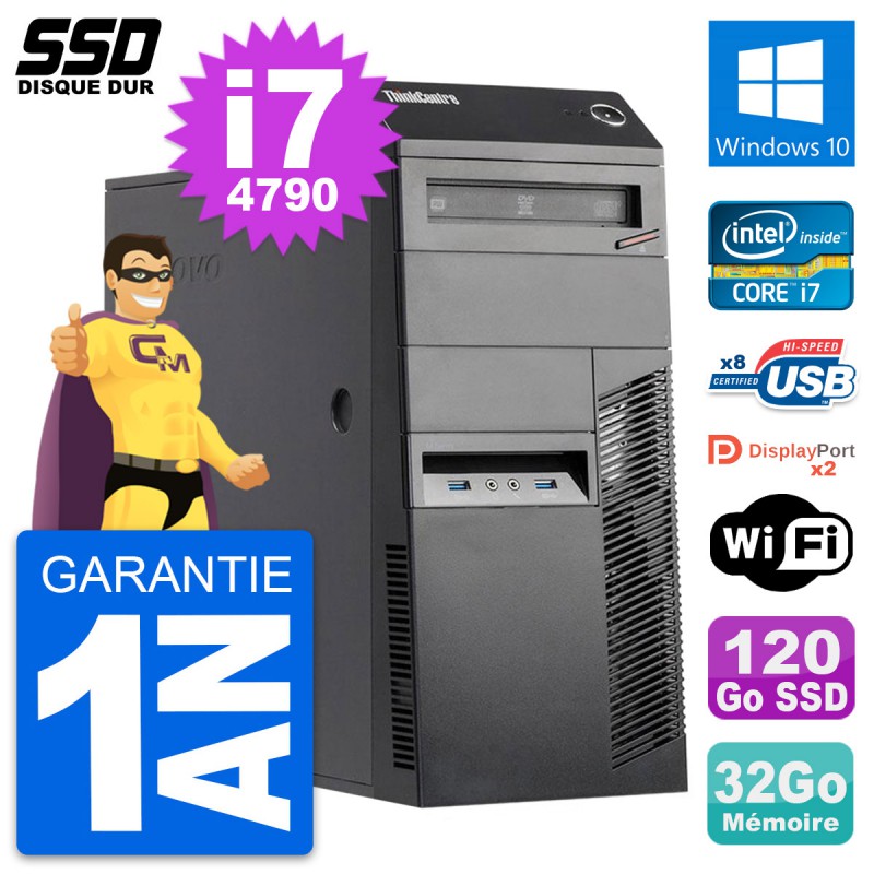 | Libellé | PC Tour Lenovo ThinkCentre M83 Intel i7-4790 RAM 32Go SSD 120Go Windows 10 Wifi |