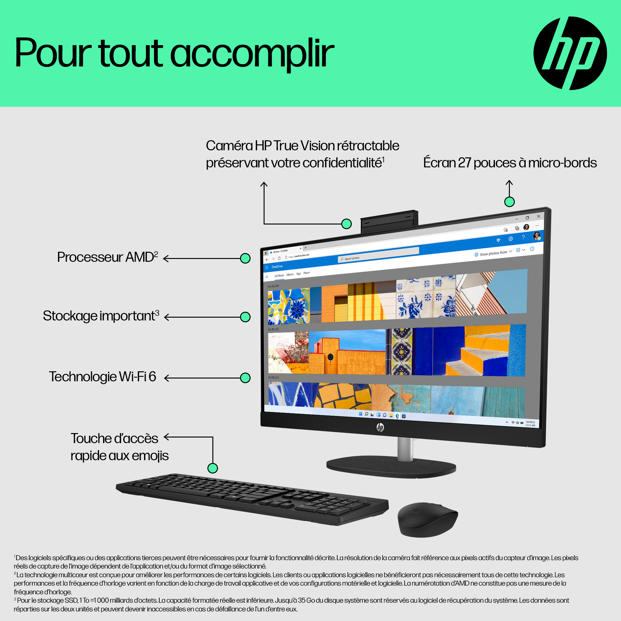PC Tout En Un HP 27-cr0074nf / 27" Full HD / AMD Ryzen 7-7730U / 16 Go RAM / 512 Go SSD