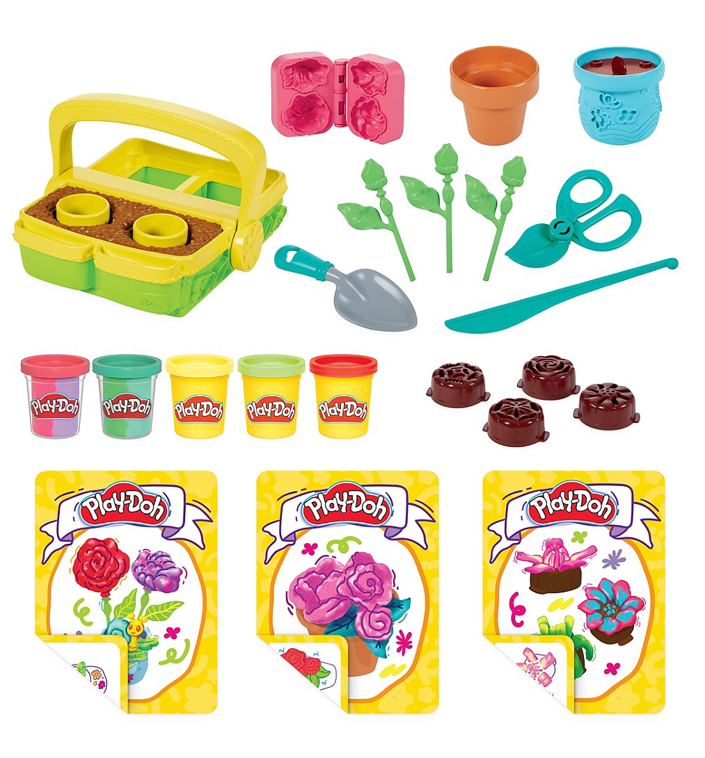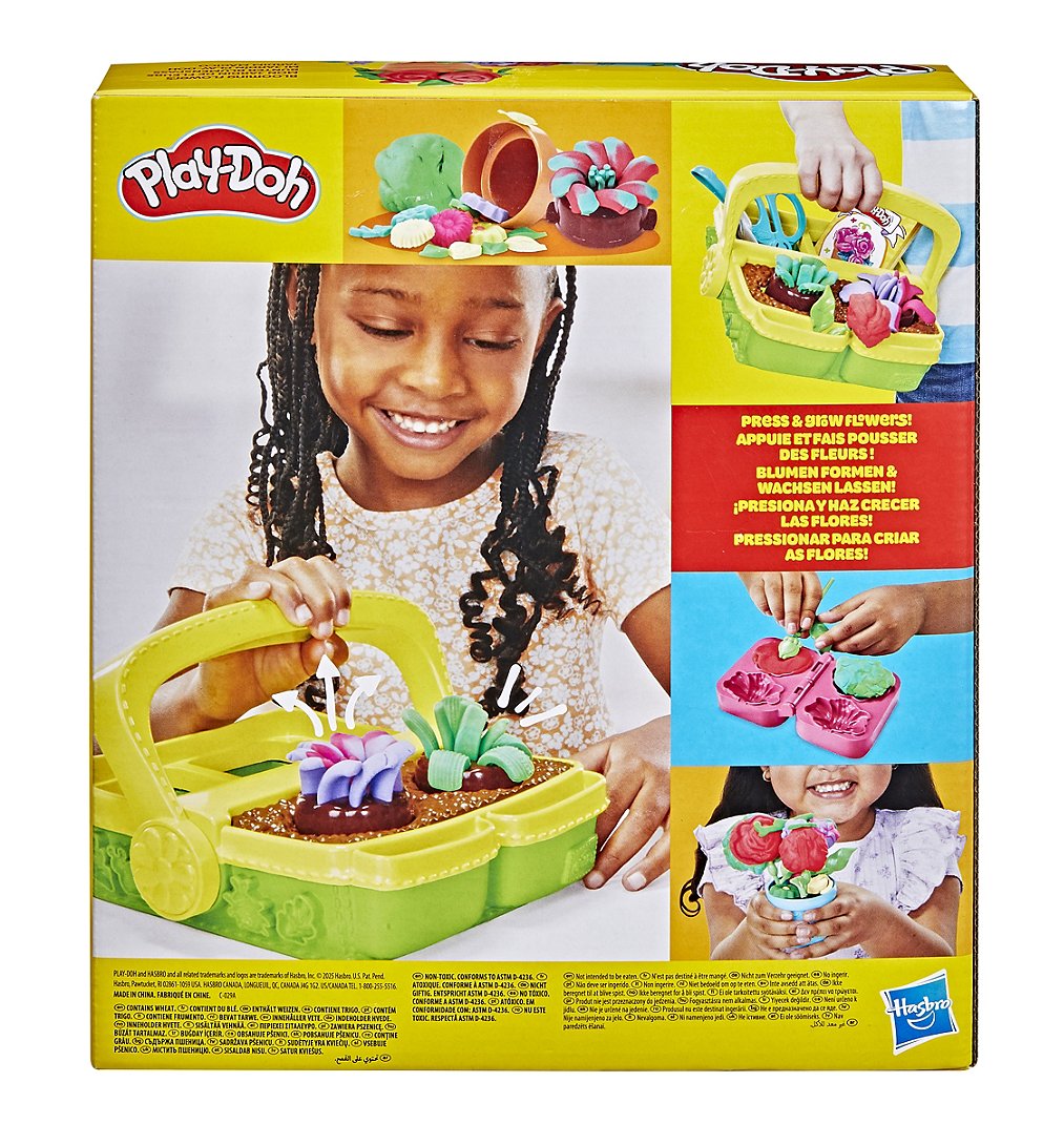 Étape 1 : Choisir des formes et des couleurs Pour commencer, il suffit de mettre une ou deux couleurs Play-Doh dans la boîte-jardin et de placer un moule à fleur par-dessus. Étape 2 : Appuyer et faire pousser des fleurs Play-Doh On appuie ensuite sur la poignée pour faire pousser 2 fleurs Play-Doh colorées à la fois dans la boîte-jardin.