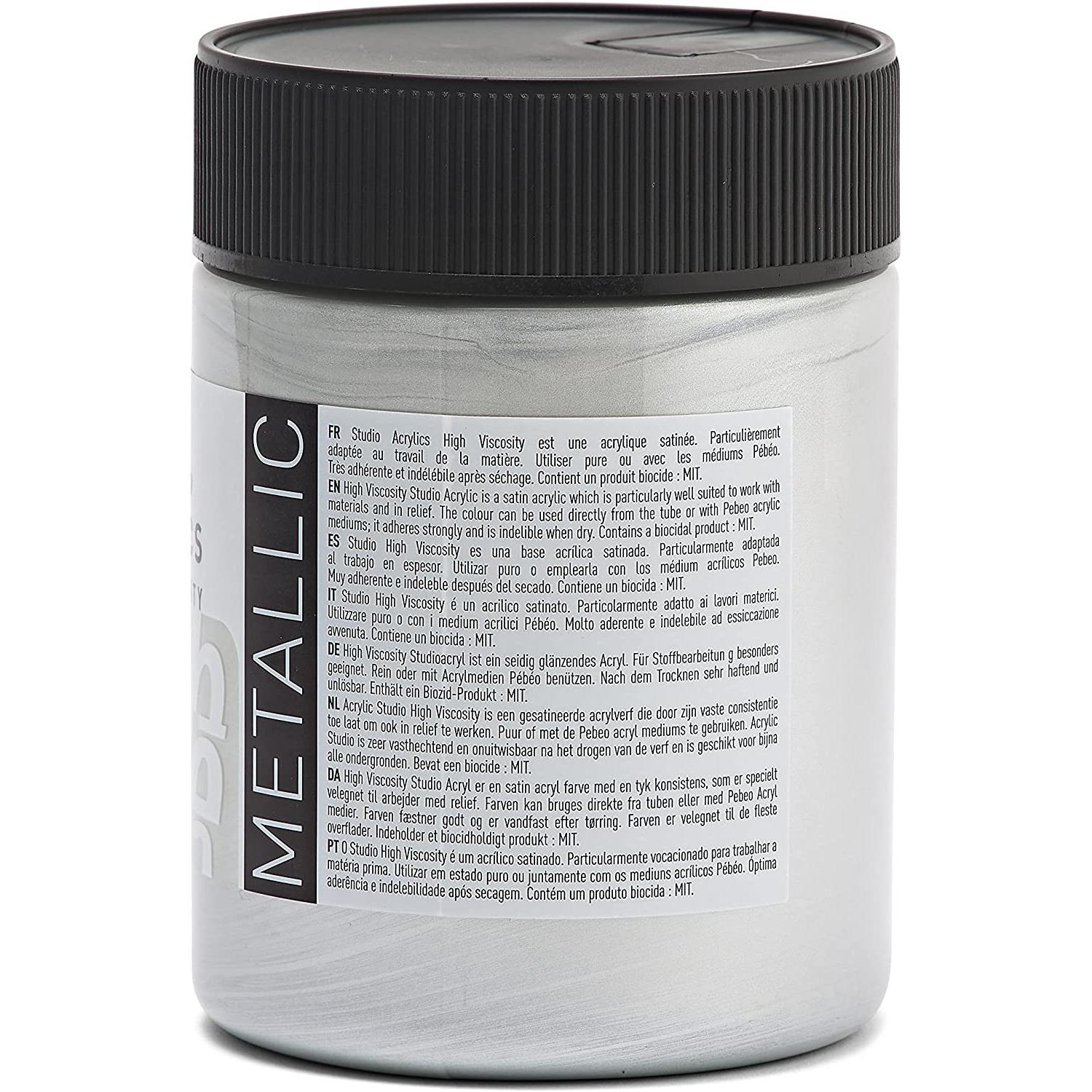 Pebeo Flacon 500ml Peinture Studio Acrylics Haute Viscosité ARGENT
