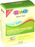 Préparation pour boisson aux extraits naturels de plantes (Denrée alimentaire pour bébé) Pediakid Bébé Gaz est recommandé pour lutter en douceur contre les gaz intestinaux et favoriser le confort digestif : • Les extraits de Fenouil, Menthe poivrée, Mélisse et Camomille contribuent au confort digestif. • Les extraits de Fenouil et Menthe poivrée aident à réduire les gaz. • Les extraits de Mélisse et Camomille apaisent les gênes intestinales.