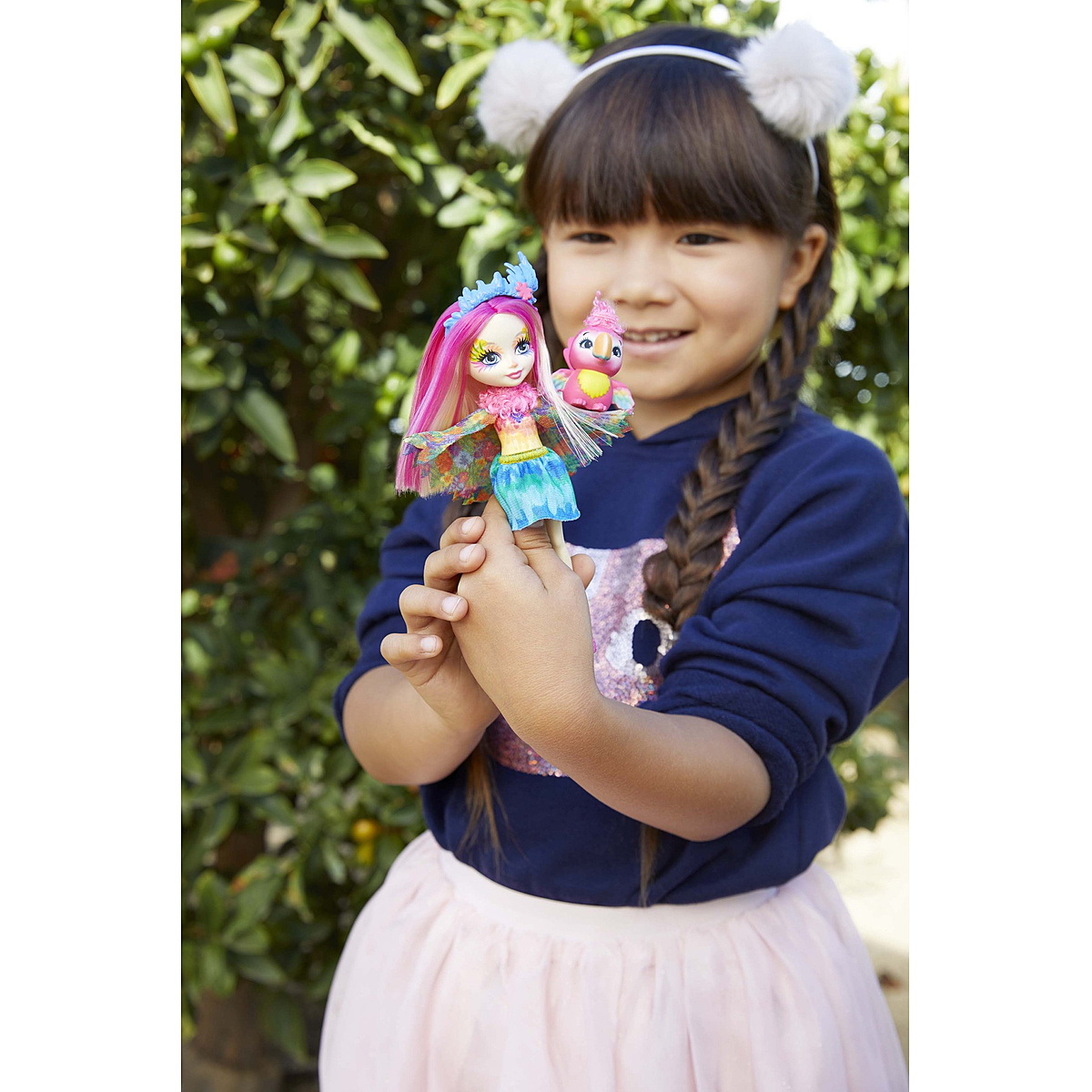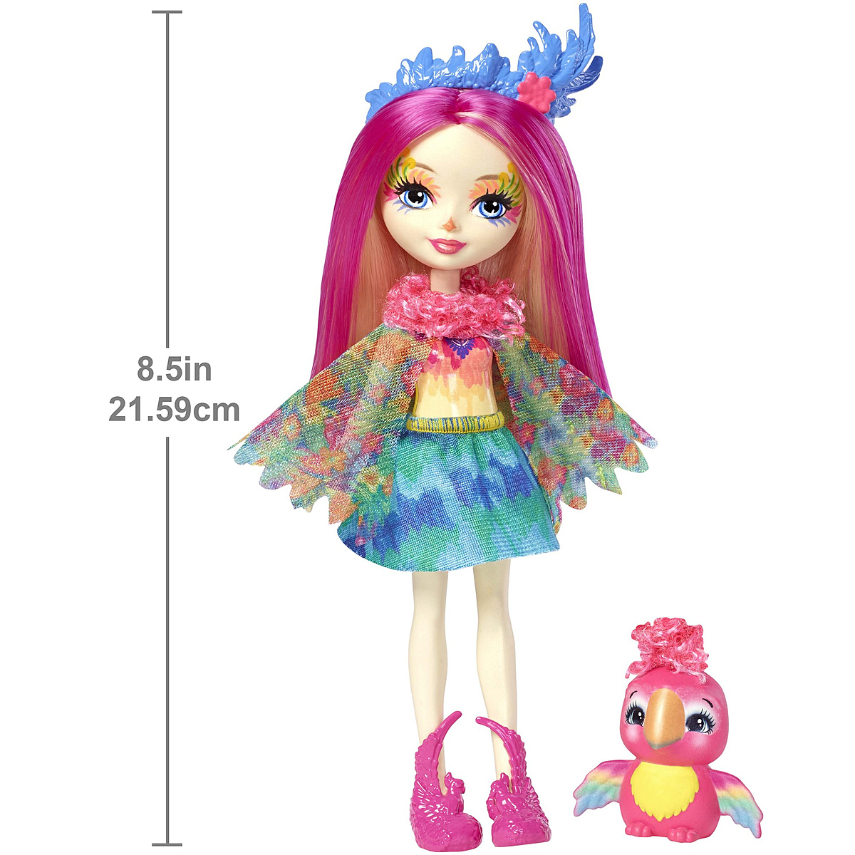 Très jolie poupée très colorée. Le perroquet qui l'accompagne est adorable. Ma fille de 6 ans qui possède d'autres Enchantimals trouve que cette poupée est une des plus belles.