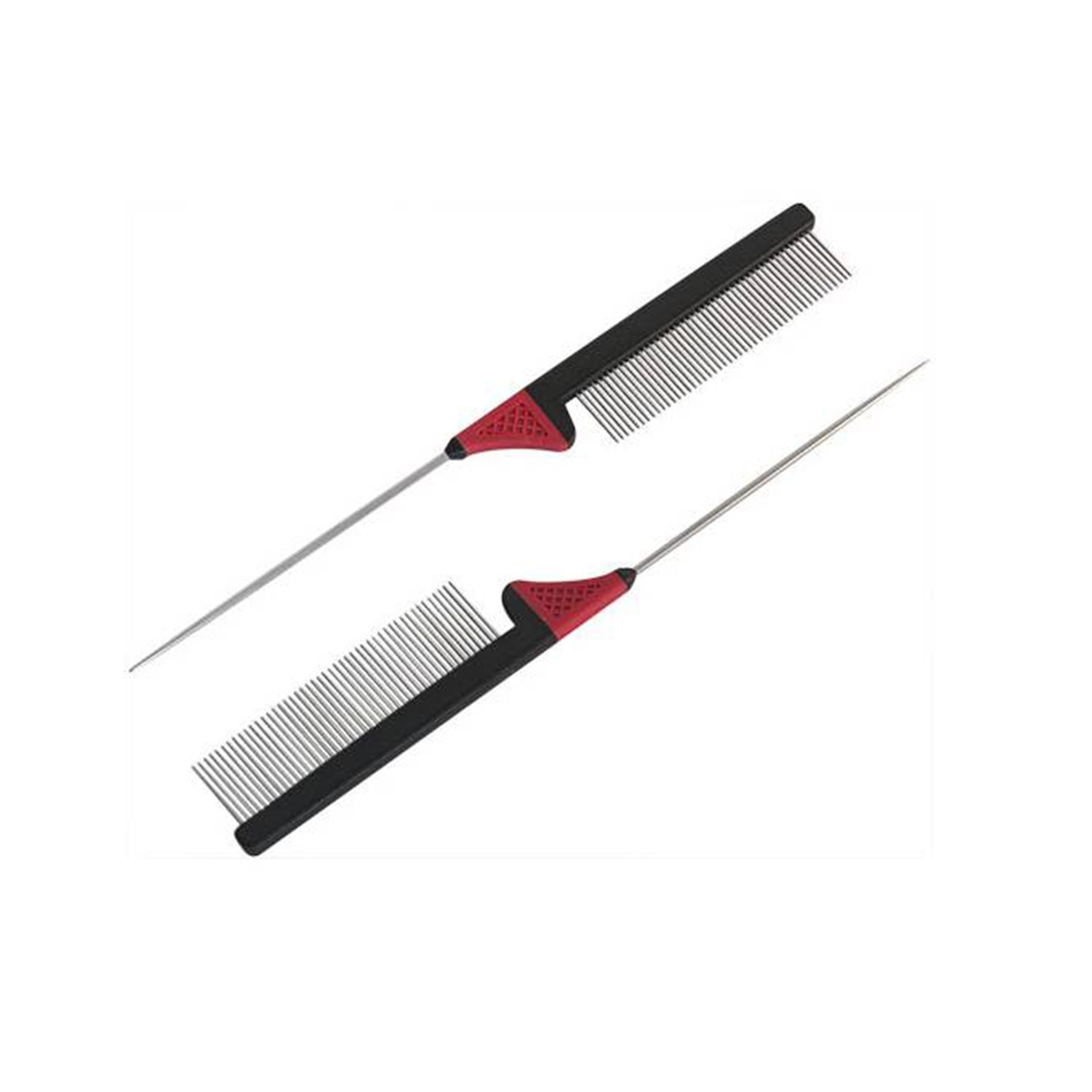 Peigne à queue métal dents longues.Caractéristiques : Longueur (22cm), hauteur des dents (2.3cm) Peigne à manche ergonomique antidérapant Avec queue en métal Comporte 47 dents Longueur de couverture des dents : 8 cm