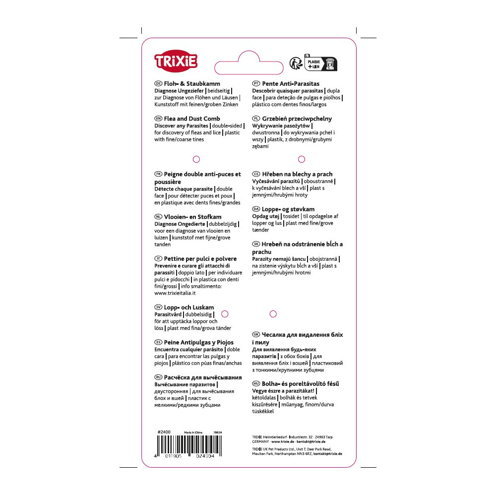 - Peigne double anti-puces et poussière