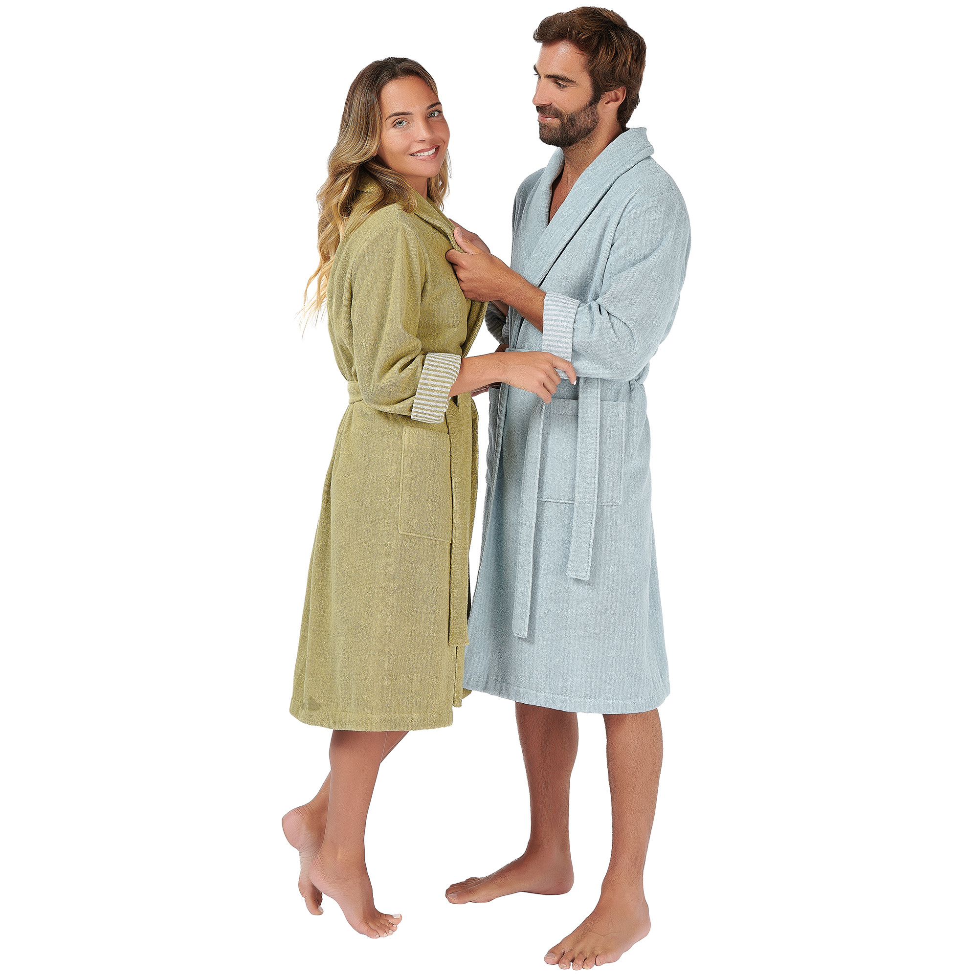 Offrez douceur et réconfort à vos fins de journées avec ce peignoir de bain collection EFFICIENCE PURE. En éponge coton et coton recyclé pour un coté plus écolo, il est sûr qu'il vous charmera par sa grande qualité d'absorption et ses rayures à l'intérieur pour un côté très chic. Conçu pour un usage régulier, cette sortie de bain intemporel vous garantira une résistance et une durabilité sans faille, lavage après lavage. Idéal pour un moment détente tout en douceur, il est une pièce indispensable à avoir dans sa salle de bain.