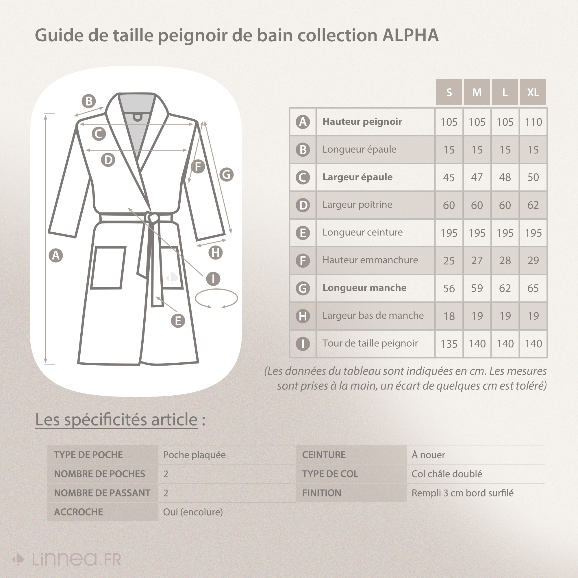 - Belle qualité d'éponge douce et moelleuse grammage de 320 g/m2, ce peignoir ALPHA vous tiendra bien au chaud.