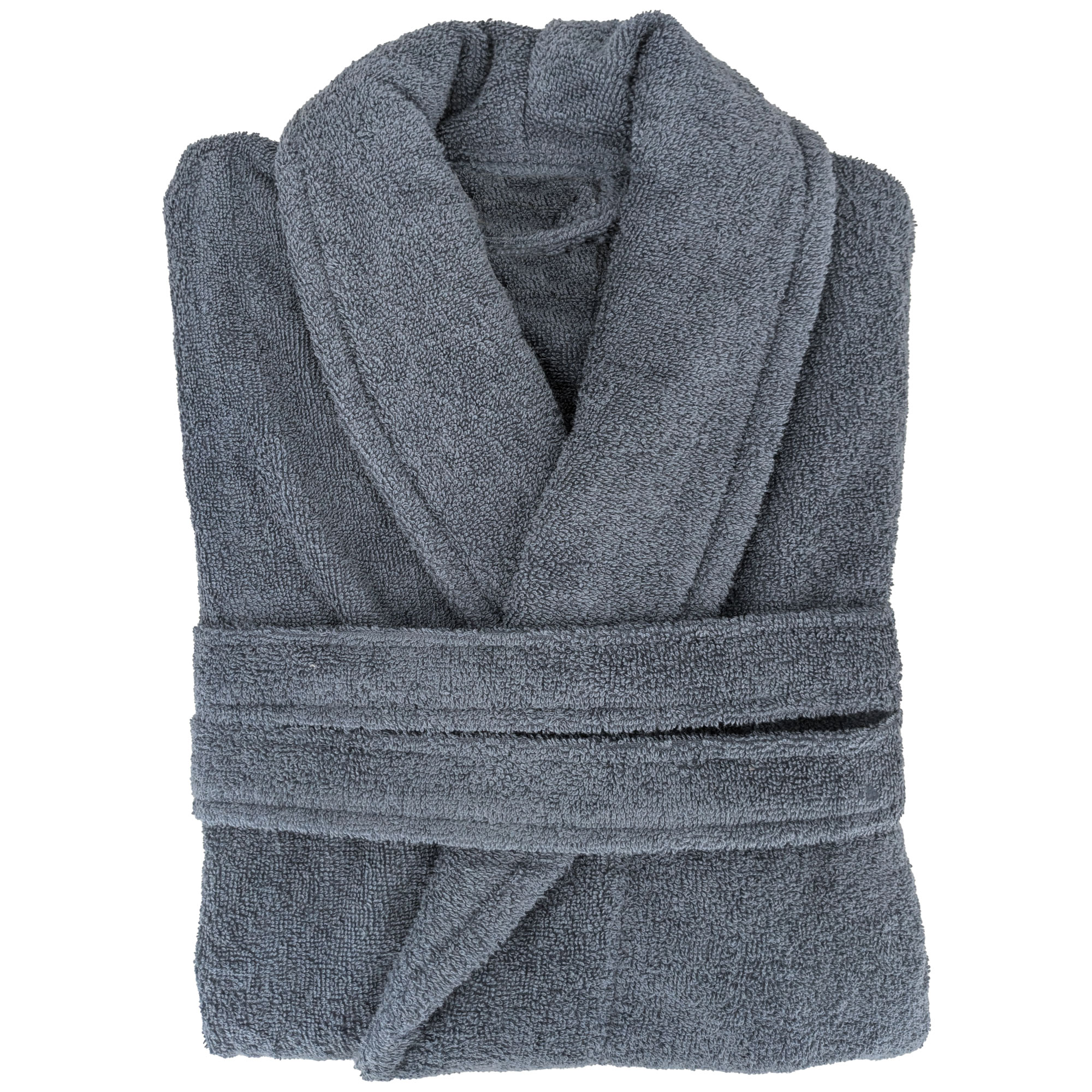 Un peignoir d'intérieur en coton épais, coloris orage, offrant douceur, chaleur et confort. Vous apprécierez ce peignoir unisex chic et confortable, idéale pour vous blottir dedans avec sa forme col châle bien enveloppante. Peignoir en coton naturel 380g/m2. Ceinture assortie qui se noue sous passants pour un cintrage facile et ajusté selon votre goût, et deux poches plaquées à l'avant.